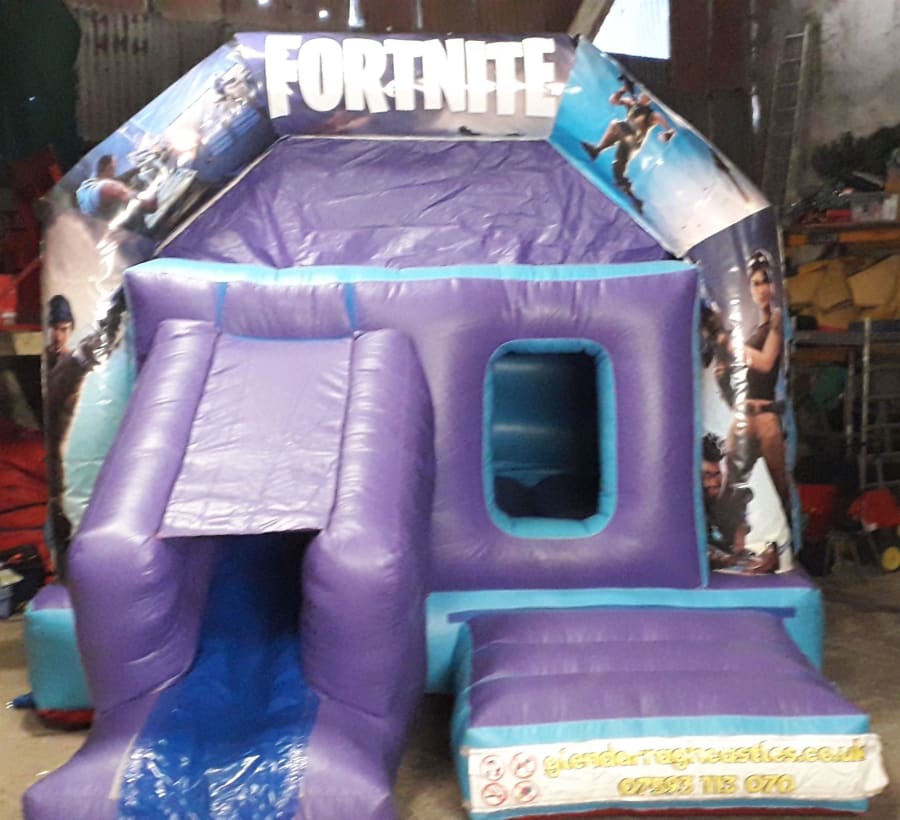 Fortnite has arrived to Ards,Bangor,Belfast and surronding areas with this awesome Fortnite themed bouncy castle available on either a front slide bouncy castle or a side slide bouncy castle take your pick on the next page
