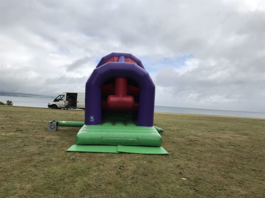 This bouncy castle/ Obstacle Course is suitable for indoor or outdoor hire and on grass or hard surface. If it is to be placed on a hard surface outdoors, to comply with insurance on any inflatables, it is a requirement to securely anchor to the ground, to do this we will need to drill 10mm holes in the ground and refill once finished. The typical one Sandbag per anchor point is not suitable enough to anchor an inflatable safely to the ground, Be aware of providers who do this!